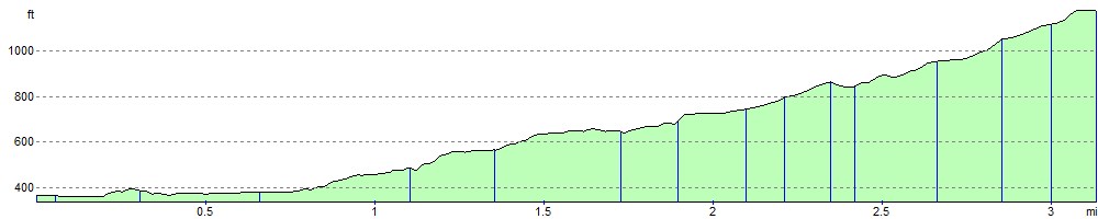 You can follow the route by using the google street view link below. It'll give you a good idea of the climbing involved and the scenery you can enjoy on the route.